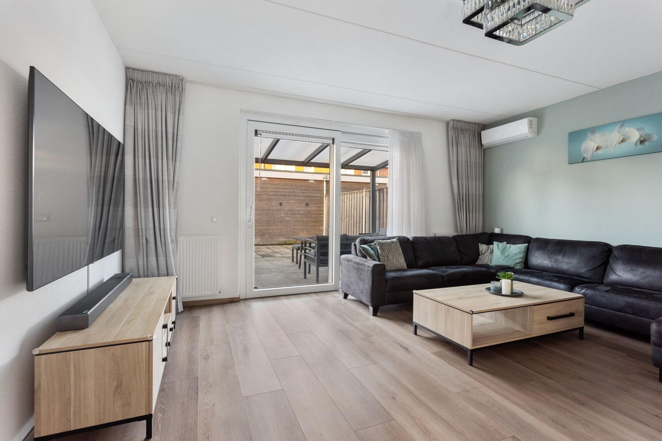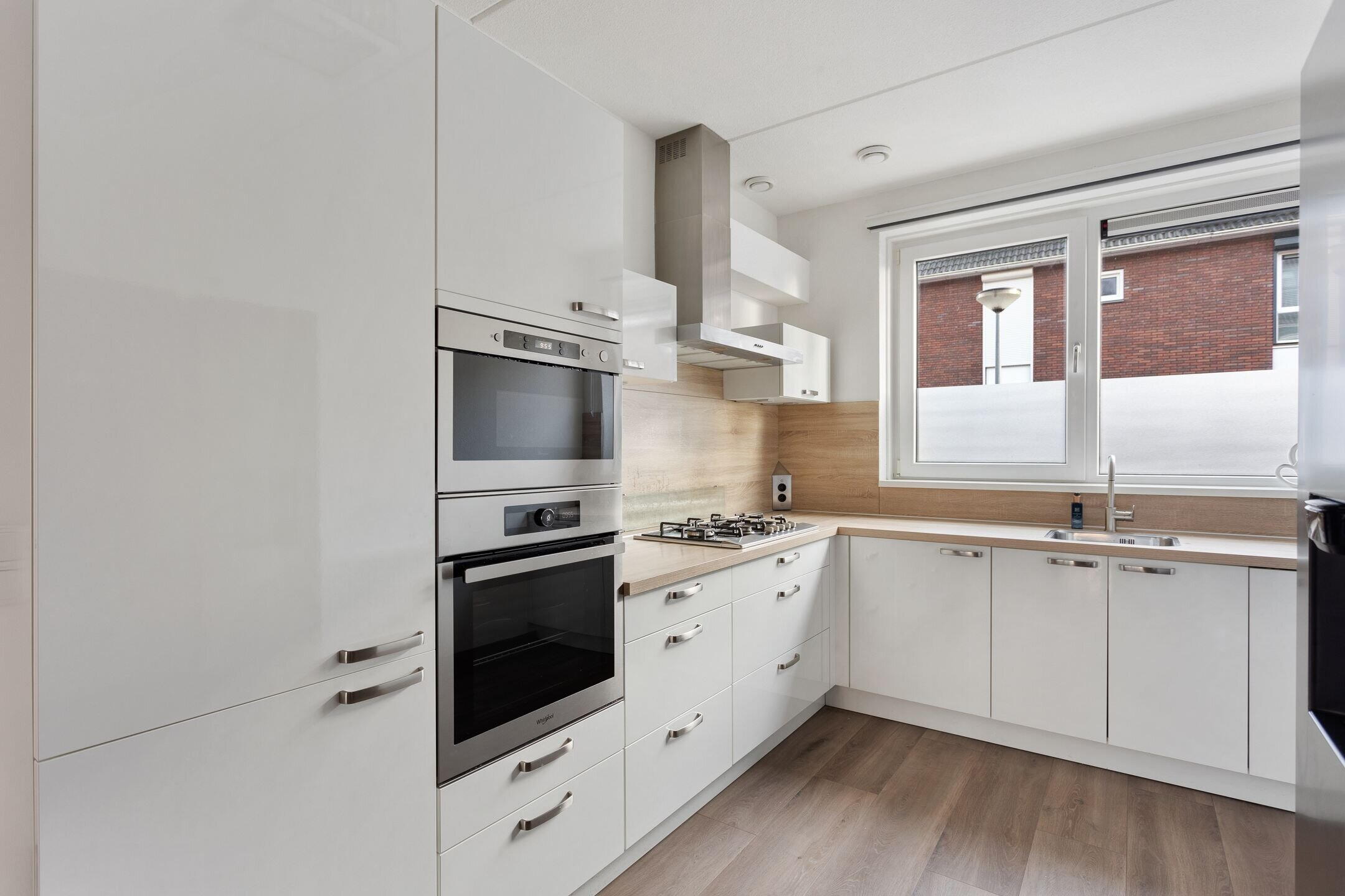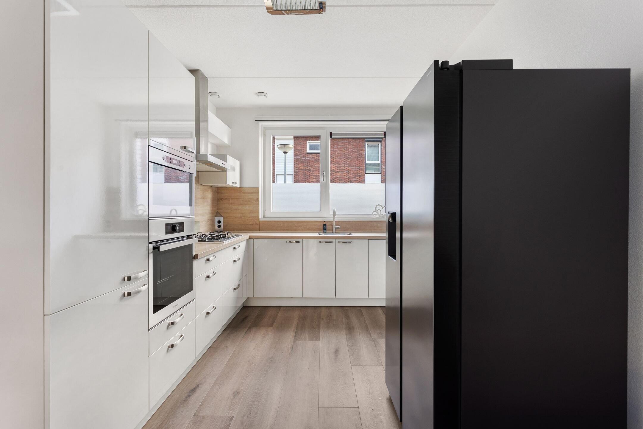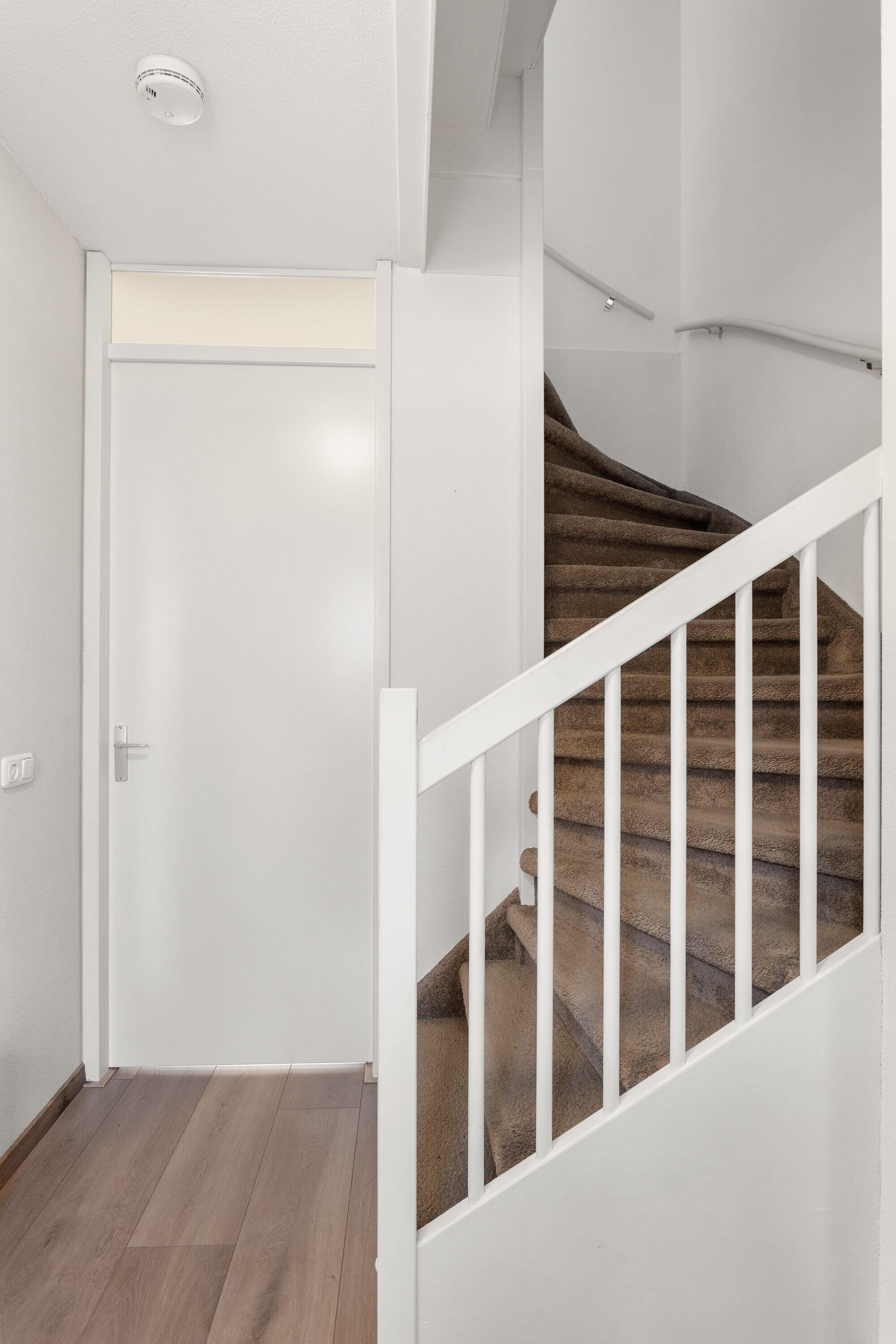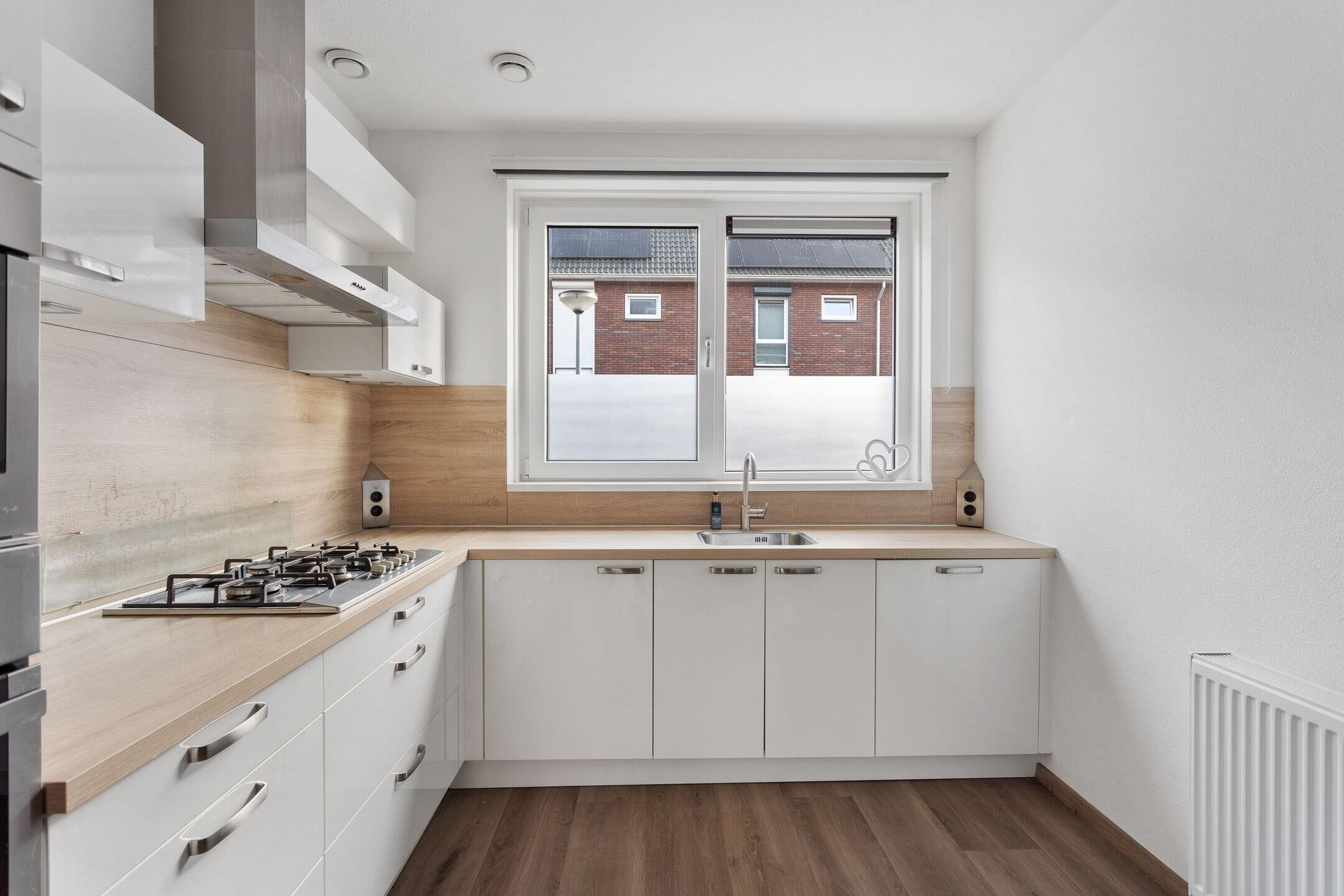Via de fraai aangelegde voortuin betreed je de woning. In de hal bevinden zich de meterkast, toilet, de trapopgang én toegang tot de woonkamer. De woonkamer is ruim van opzet dankzij de uitbouw die direct bij de bouw is gerealiseerd. Daarnaast is hier een airco-installatie aanwezig, ideaal tijdens de warme dagen. De keuken is opgesteld in een hoek met witte hoogglans fronten en diverse inbouwapparatuur, waaronder een gaskookplaat, afzuigkap, oven, magnetron, vaatwasser en losse Amerikaanse koelkast. In de woonkamer bevindt zich een praktische trapkast voor extra bergruimte. De gehele begane grond is modern afgewerkt en instapklaar.