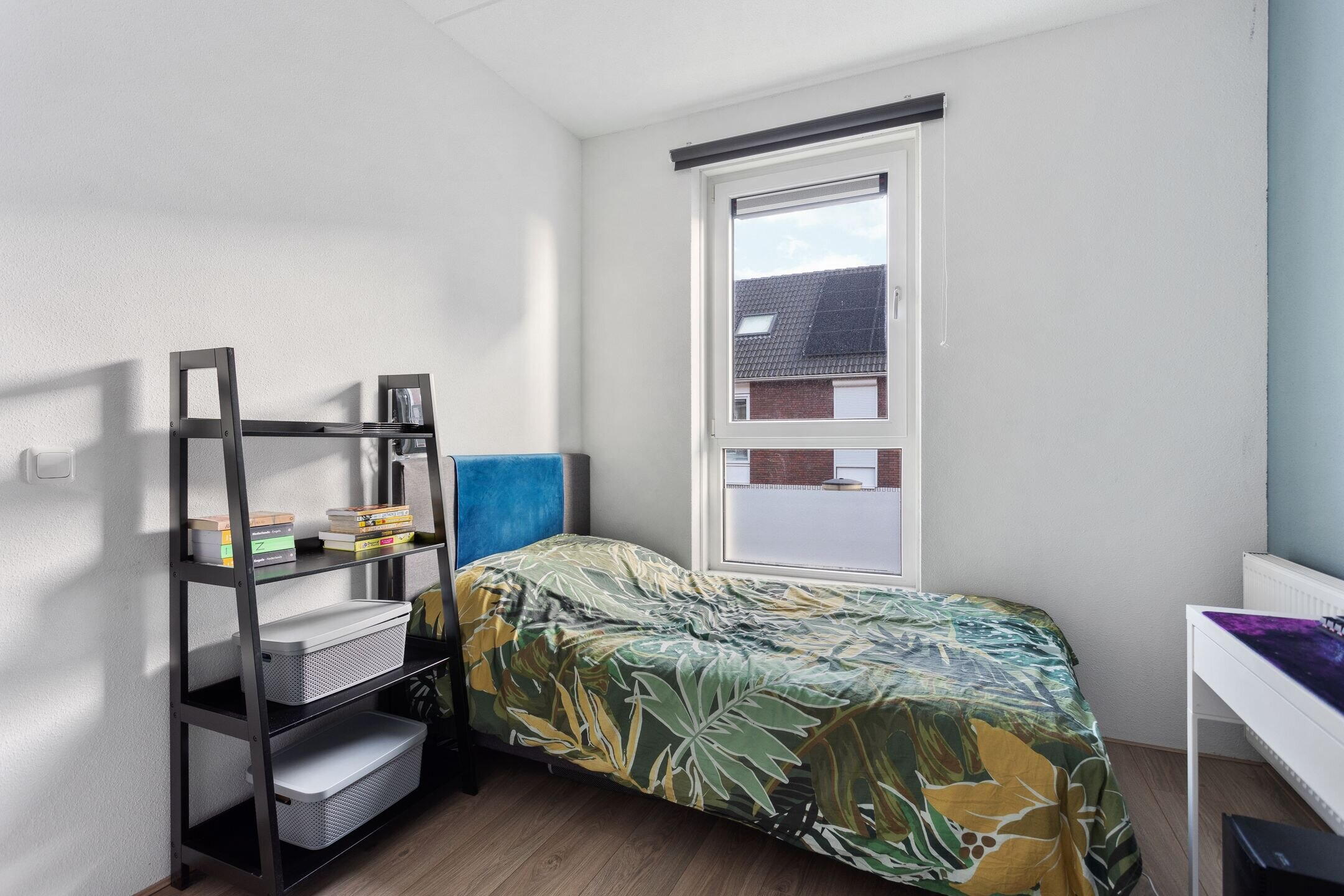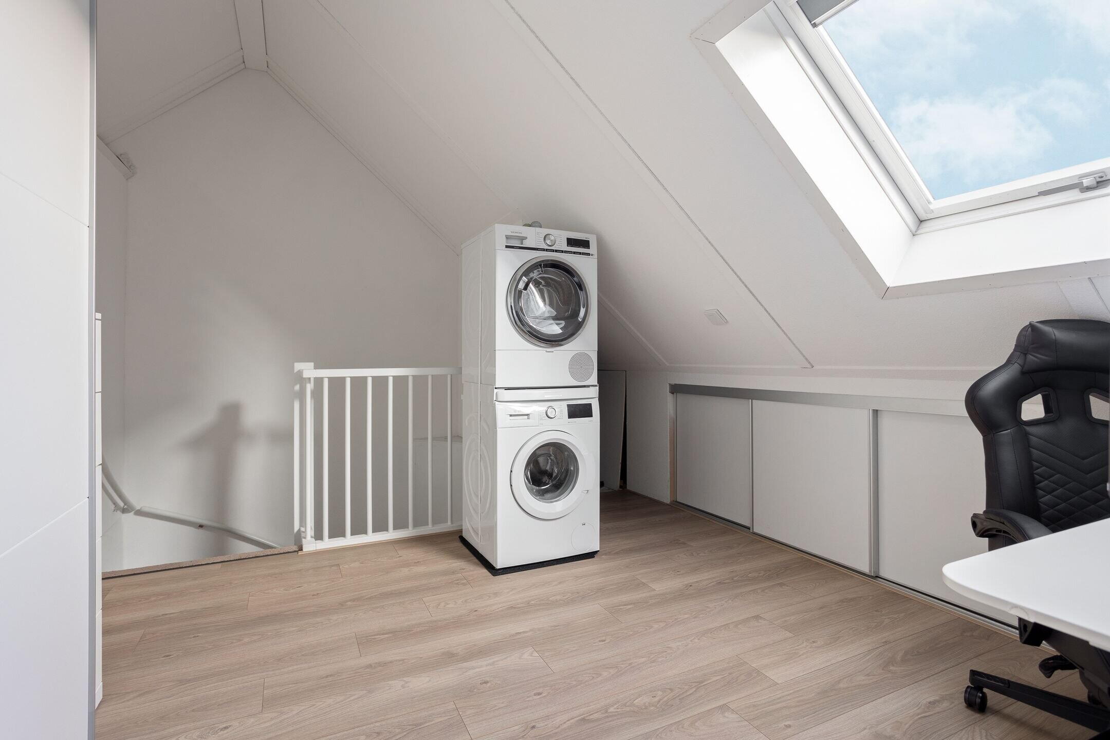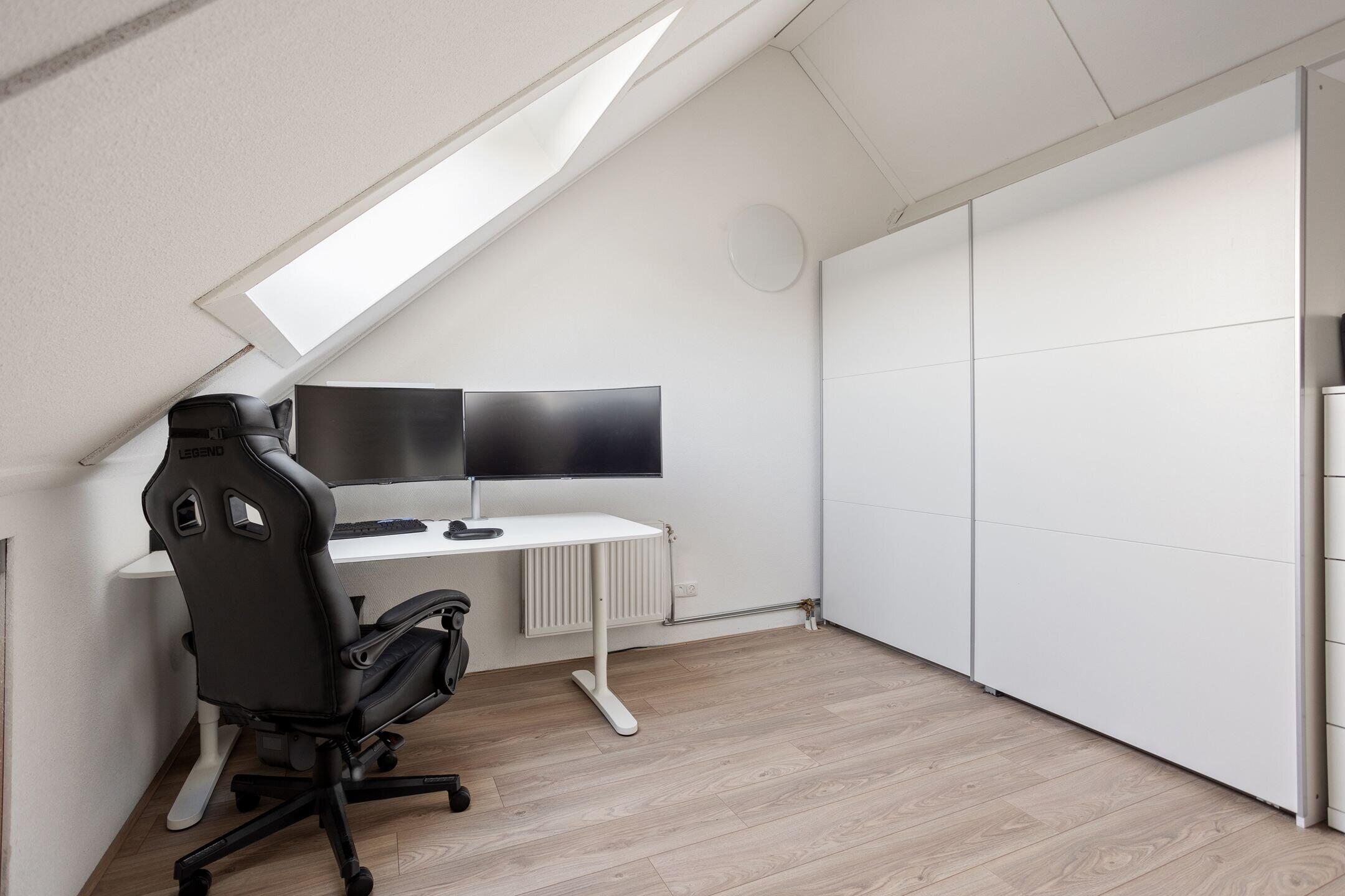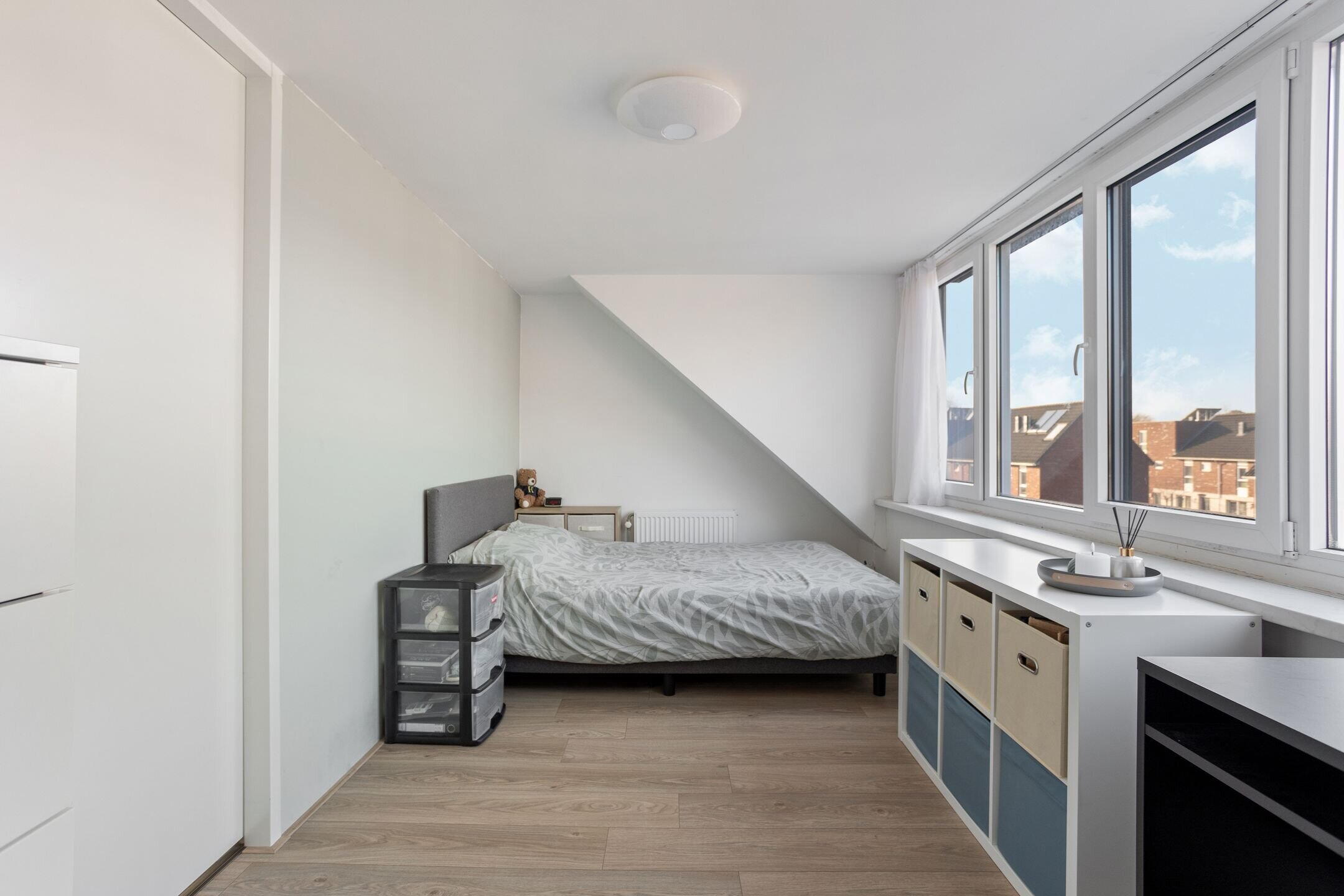 De vaste trap leidt naar de tweede verdieping met een ruime voorzolder en een vierde slaapkamer. Dankzij de kamerbrede dakkapel is deze slaapkamer bijzonder ruim en licht. De ramen zijn hier voorzien van horren en rolluiken. De voorzolder beschikt over een dakraam en biedt de mogelijkheid om een 5e slaapkamer te realiseren. Tevens bevinden zich hier de CV opstelling (2018) en de aansluitingen voor wasmachine en droger. Extra bergruimte is aanwezig achter de knieschotten. Ook deze verdieping is afgewerkt met een laminaatvloer.